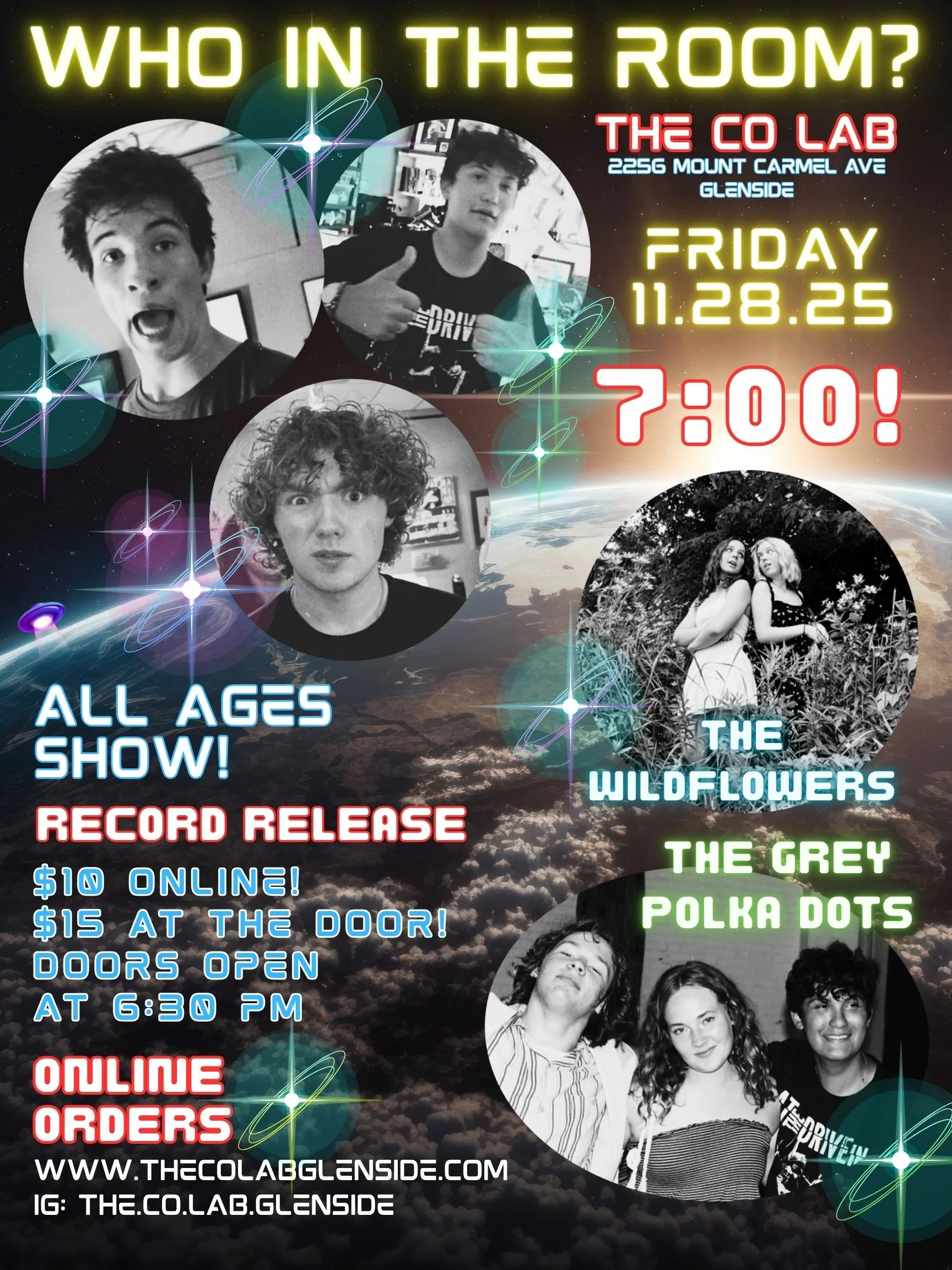 Join us for an evening of music this holiday weekend with Who in the Room?, The Wildflowers, and the Grey Polka Dots! This is also a record release for WITR? !!!